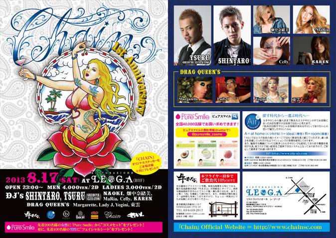 8/17(土)に開催するCHAINは、またいつもとは一味違った真夏のPARTY!