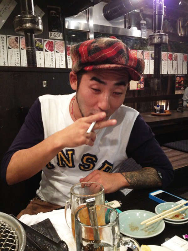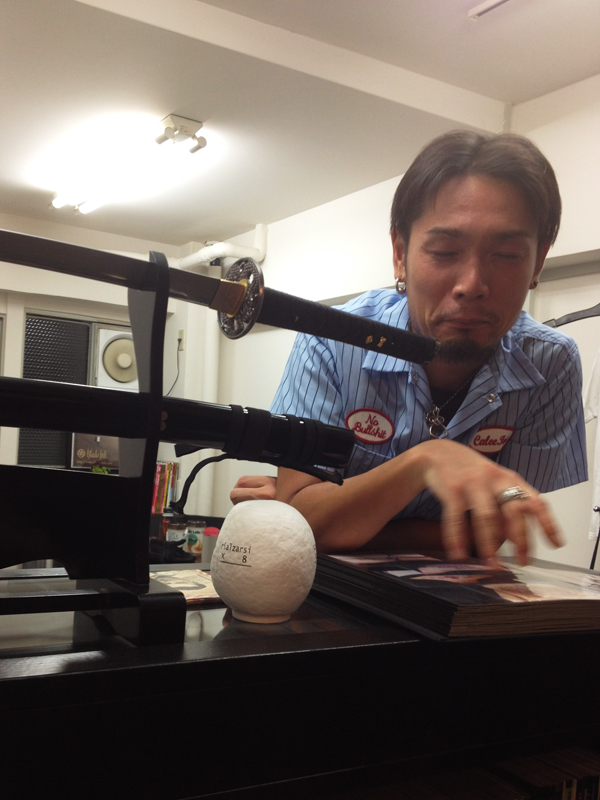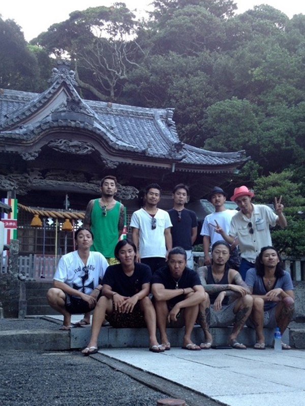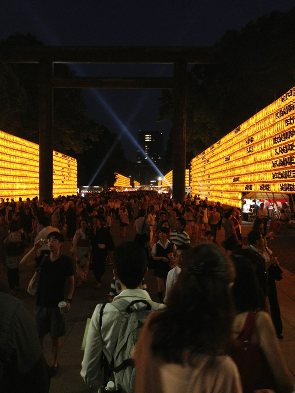 黒でこの旭日旗を彫った後、靖国神社のみたま祭りに。