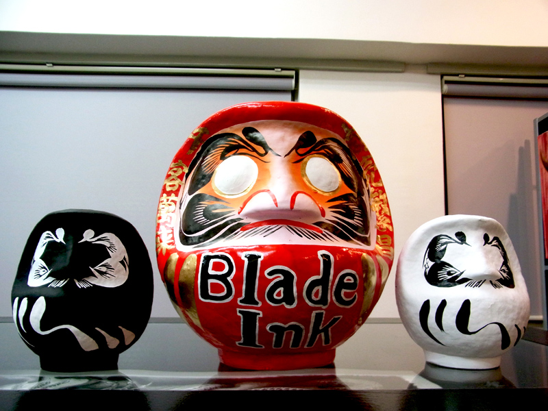 名入りの物と、白黒のはイタリア語で七転び八起きが書かれてるデザイナー達磨。