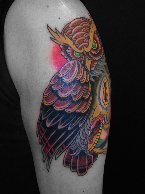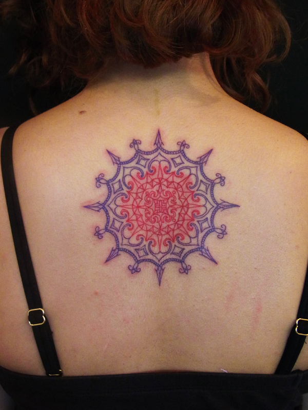こちらは肘ど真ん中、プロビデンスの目スパイダーネットとか、スパイダーウェブとか言いますが肘ほどしっくりくる部位はないと思います。