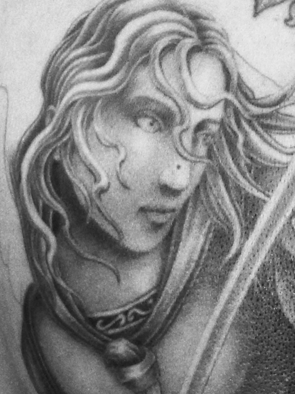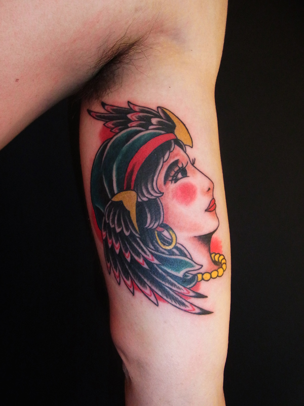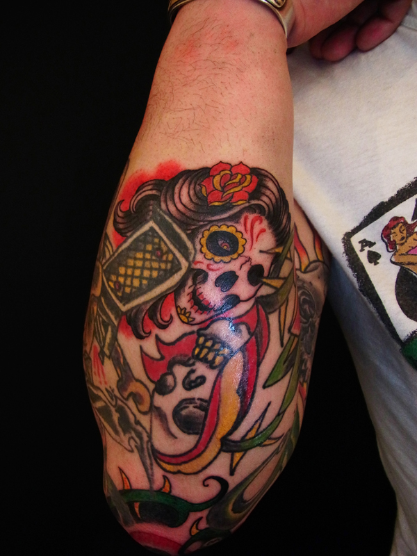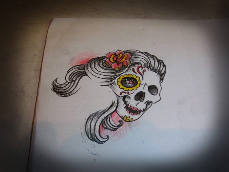 下のスカルと向かい合うように対照的にメキシカンスカルで女性にしてみました。